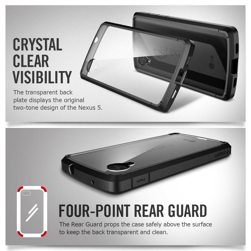 "SPIGEN Google Nexus 5 Case ULTRA HYBRID [Black] Bumper Case with Anti-Scratch Clear Back Panel"